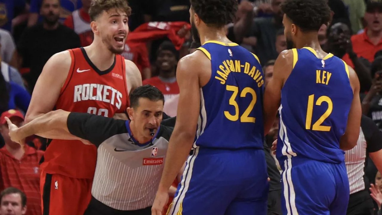 Houston Rockets ile Golden State Warriors arasındaki maçta gergin anlar yaşandı. Maçın son 4 dakikasında, Golden State oyuncusu Spencer’ın Alperen Şengün’e kafa atması büyük tepki topladı. Houston Rockets ile Golden State Warriors arasındaki NBA play-off karşılaşması, yaşanan gerginlikle gündem oldu. Houston’daki maçın bitimine 4 dakika kala, Golden State oyuncusu Spencer ile Alperen Şengün arasında sert […]